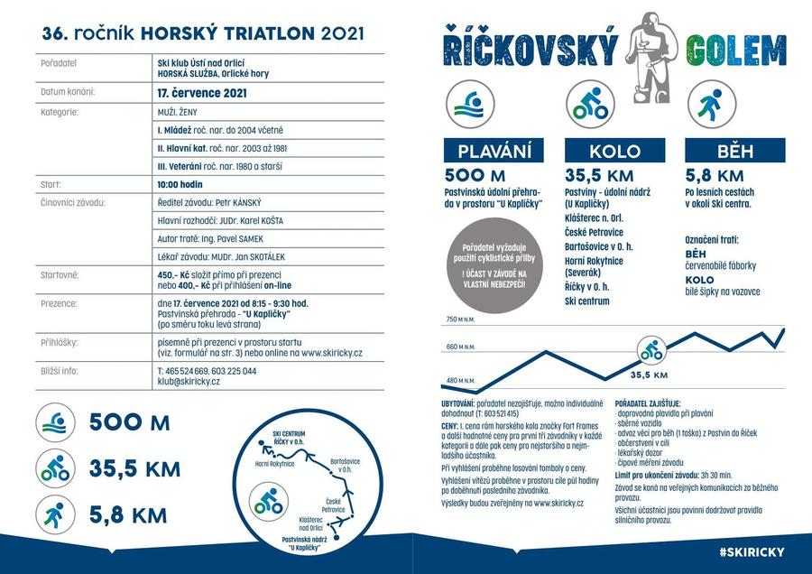 Říčkovský Golem 36. ročníku triatlonu Říčkovský Golem, proběhne 17. 7. 2021.