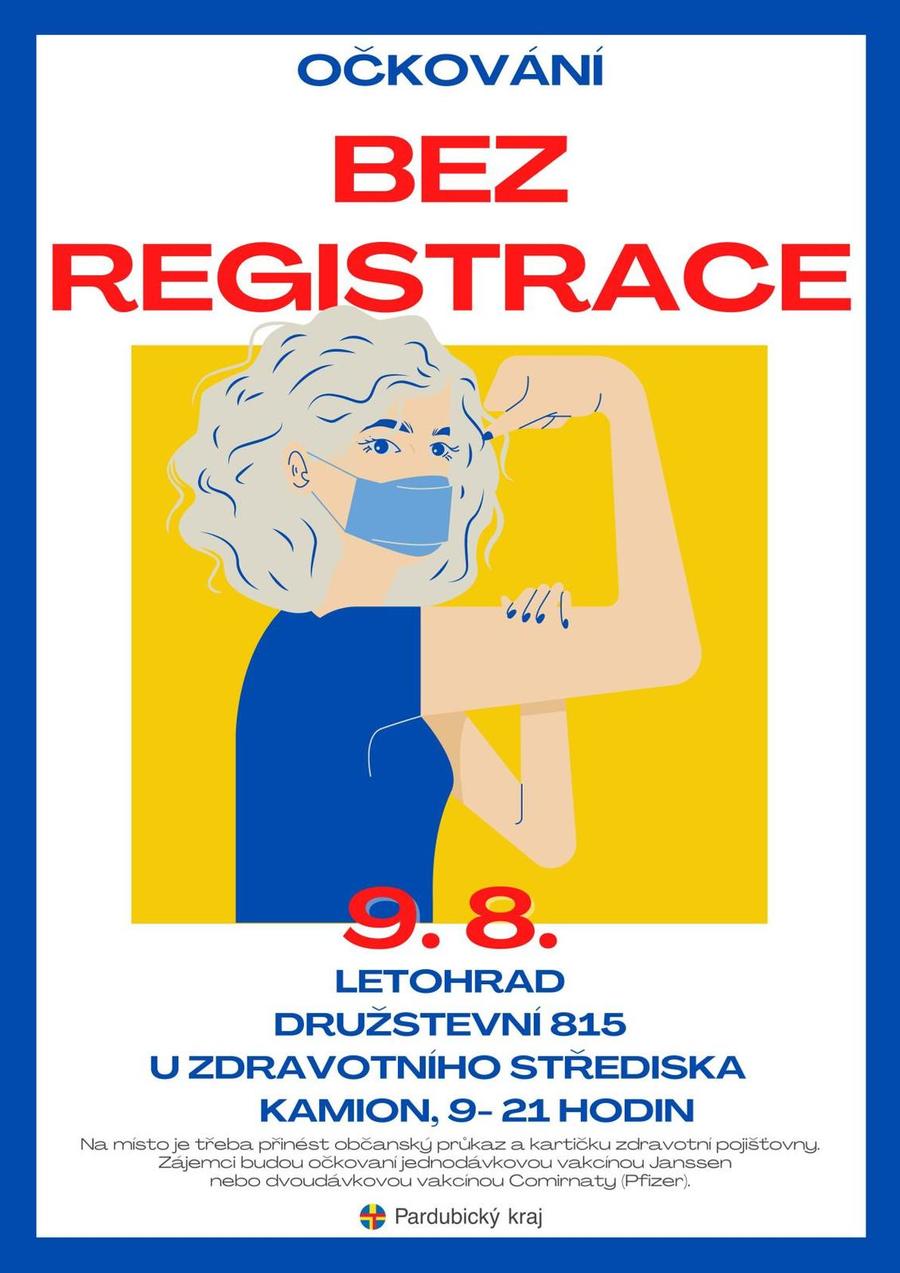 Není třeba žádné registrace ani rezervace, stačí přijít v pondělí 9. 8. v době od 9 do 21 hodin ke zdravotnímu středisku v Letohradu, kde si preferovanou vakcínu můžete vybrat.